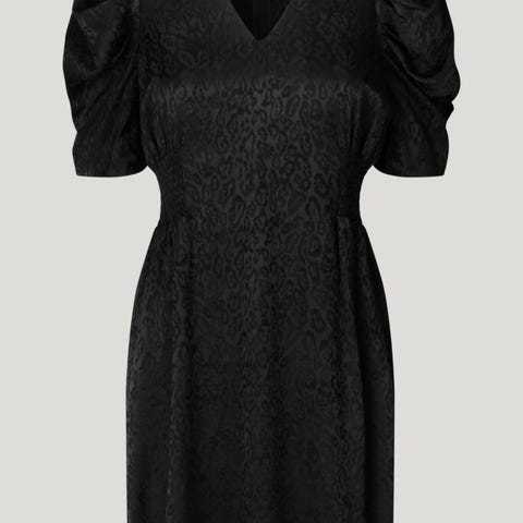 Baum und Pferdgarten festkjole i størrelse M. Kjolen er i blå polyester med strukturert mønster. Den har kort erm, rund hals og glidelås i ryggen. Passer til bruk ved formelle anledninger og andre situasjoner der man ønsker en enkel, pen kjole. Noe skade på innerforet nederst men ikke noe som synes utenpå.