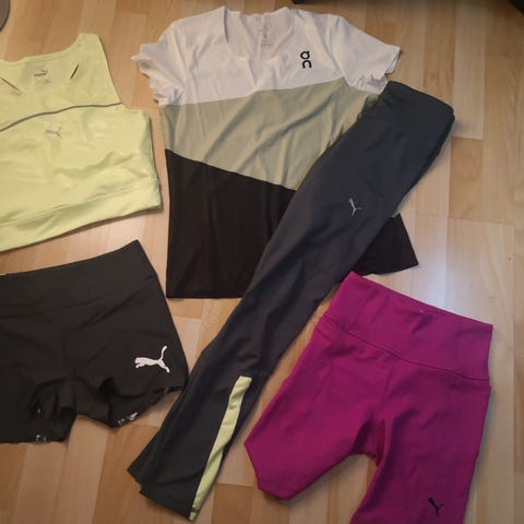 Nike, under armor, bumpro og Adidas treningsklær for dame i størrelse M.