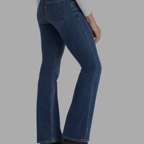 Levi's Superlow Boot jeans for dame i størrelse M med livvidde W28. Jeansene er i blå denim av bomull. Modellen er en bootcut-jeans med lav midje og fem lommer. Brukt kun en dag-da den var for stor lengde 32