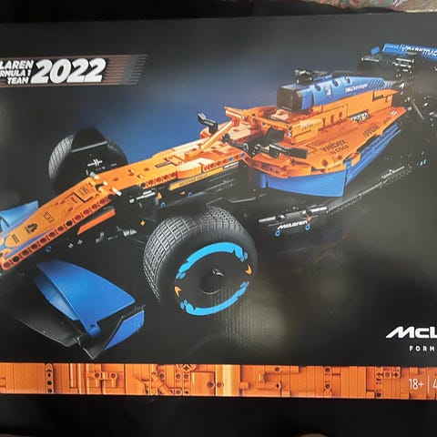 LEGO Technic McLaren Formula 1 racer byggesett i oransje og blå farger.