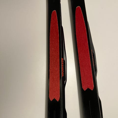 Rossignol R-Skin langrennski med integrert fell og NNN-kompatible bindinger. Skiene har svart og hvit design med fargedetaljer og tydelig Rossignol-logo. Undersiden har R-Skin fellesone for feste uten bruk av klister eller festevoks. Egner seg til klassisk langrenn på preparerte løyper. Passer for brukere som ønsker en fell-ski med enkel håndtering og jevnt feste. Fellen begynner å bli slitt, må nok skiftes snart.