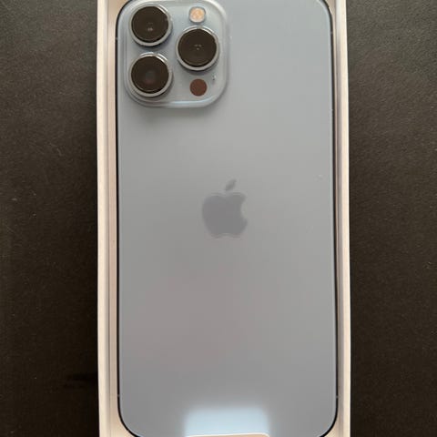 Apple iPhone 13 Pro Max smarttelefon med 256 GB lagringskapasitet i sierrablå farge. Leveres i original eske.
