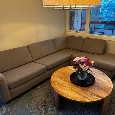 Sofabordet er solid og litt tungt, så det må bæres av to personer.