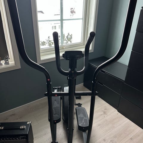 Trimsykkel med innebygd treningscomputer i svart utførelse. Sykkelen har justerbar setehøyde med flere høydeinnstillinger, samt justerbart styre. Pedaler med fotstropper gir stabilitet under bruk. Treningscomputeren viser grunnleggende treningsdata (for eksempel tid og antall omdreininger, avhengig av modell). Egnet til innendørstrening hjemme for generell kondisjons- og utholdenhetstrening.