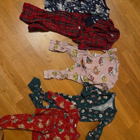 3 pysj sett og 2 pysj overdeler 5 bodyer, 3 av de i lett ull. 2 shortser og en solhatt fra Reflex.