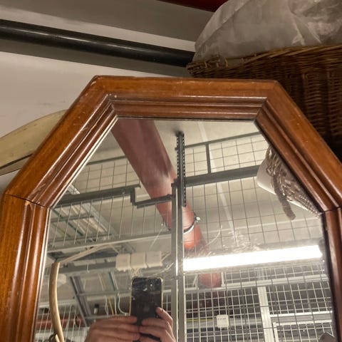 Klassisk veggspeil i mørkbeiset ramme (1930-1950)