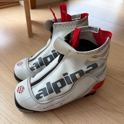 Alpina RSK skisko i hvit og rød farge. Modellen har glidelås i front som dekker lisser, og hælstropp for bedre støtte rundt ankelen. Sålen er tilpasset klassisk langrennsbinding. Overdelen er laget i syntetisk materiale som er lett å tørke av. Egner seg til bruk i preparerte langrennsløyper.