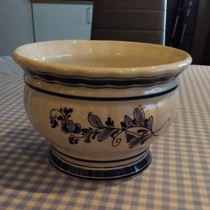 Brødrene Pedersen potte med hank hvit med blå blomster dekor