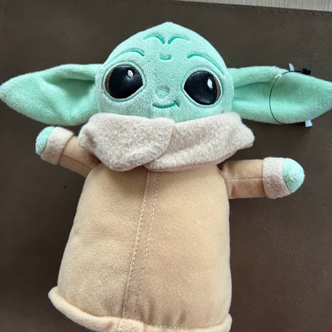 Star Wars The Child interaktiv figur. Figuren forestiller «The Child» fra Star Wars-universet, med grønn hudfarge og store ører. Den har beige kåpe med krage i imitert pels. På baksiden sitter en bryter med innstillingene ON, TRY ME og OFF. Figuren er beregnet som leke- eller samlefigur og kan plasseres på hylle eller brukes i lek. Egnet for barn som liker Star Wars og samlere av figurer fra serien.