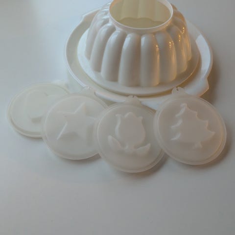 Gele og andre dessertar slepper forma lett når det litle lokket med mønster blir tatt av.