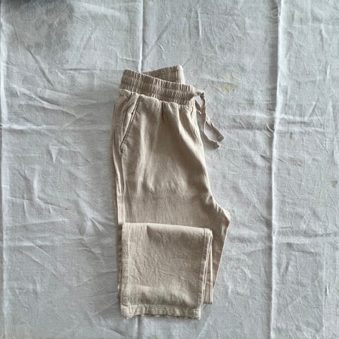 H&M bukse for barn i størrelse 104. Buksen er beige og laget av bomull. Unisex-modell som passer både gutter og jenter. Den har strikk i livet og rette ben. Egnet til hverdagsbruk for barn i aktuell størrelse.