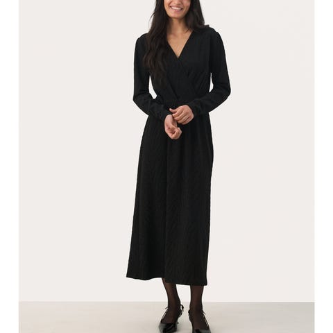 Diane von Fürstenberg hverdagskjole i størrelse XS. Kjolen er svart og laget i ull og kashmir (72% ull og 28% kashmir). Klarte ikke ta gode bilder av kjolen, så bildene er fra nettet. Modellen har omslagssnitt med knyting i livet og lange ermer. Lengden går ned mot leggen, avhengig av høyde. Passer som hverdagskjole eller til enkle, pene anledninger. Kjolen ser slik ut også i virkeligheten.