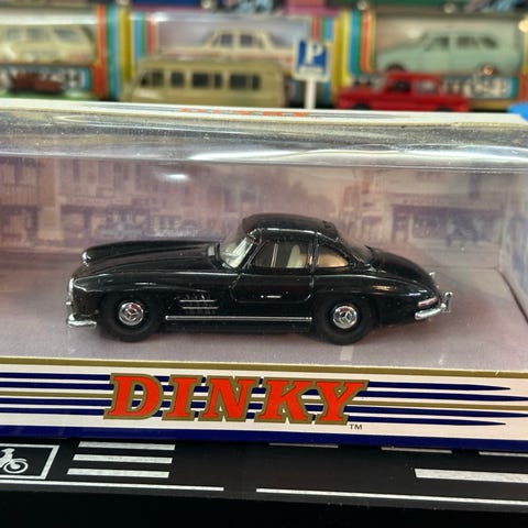Matchbox Models of Yesteryear Y40 1931 Mercedes Benz 770 modellbil i metall. Modellen er en detaljert miniatyr av Mercedes Benz 770 fra 1931, levert i original eske med plastvindu. Bilen er lakkert i grå med mørk blå takdel og har kromfargede detaljer og hjulkapsler. Egnet som samlerobjekt eller utstillingsmodell for voksne og barn over 8 år.