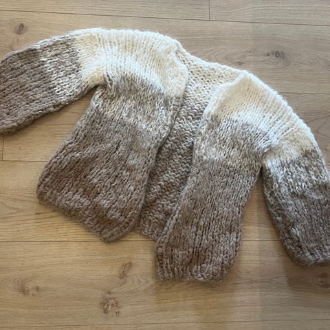 Hjemmestrikket Camilla Pihl cardigan i størrelse M-L., etter hvor oversized man vil ha den.