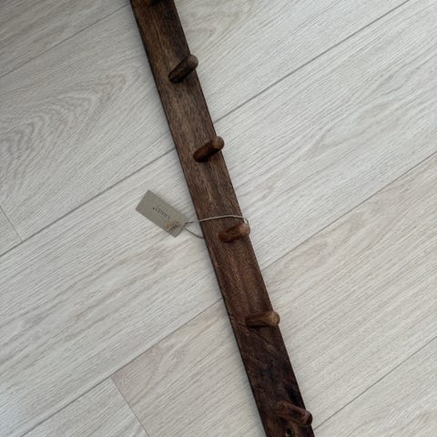 Knaggrekke Bjørk fra Iris Hantverk er en varm og funksjonell knaggrekke i ubehandlet bjørk, utformet med omtanke og håndverksfølelse. Den passer like godt i gangen som på kjøkkenet eller på badet og gir enkel oppbevaring for jakker, håndklær og kjøkkenhåndklær. Takket være at avstanden mellom knottene er tilpasset slik at flere brett kan settes sammen, kan du enkelt bygge ut lengden etter behov. En tidløs og praktisk detalj som kombinerer naturlig materiale med smart funksjon.