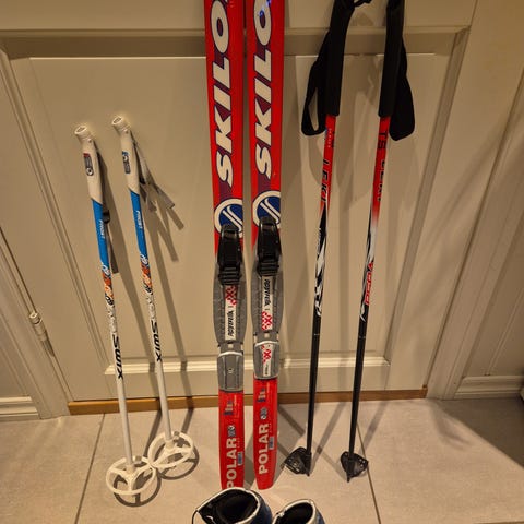 Skisko Rossignol størrelse 32, måler ca 20 cm i sålen. Selges helst samlet, men kan deles opp hvis ønskelig.