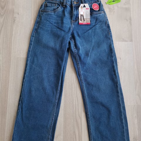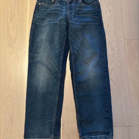 Levi's Loose Taper jeans for gutt i størrelse 152. Buksen er i blå denim laget av bomull med stretch, og har klassisk femlommers design. Modellen har løs passform med avsmalnende ben (loose taper) og justerbar linning med beltehemper. Egnet til hverdagsbruk for barn i aktuell størrelsesgruppe.
