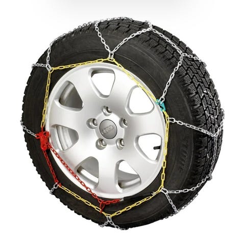 Snøkjettinger til personbil. Leveres i plastkoffert for enkel oppbevaring. Kjettingene er beregnet for bruk på vinterføre og monteres på drivhjulene for bedre veigrep på snø og is. Settet består av to kjettinger med fargede plastbøyler og lenker som forenkler montering og stramming. Passer til utvalgte dekkdimensjoner som er angitt på etiketten på kofferten.