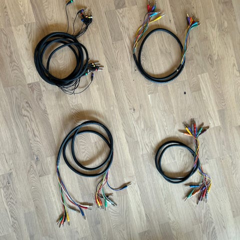 Ulike kabler, RCA, jack, aux, C13, display port.