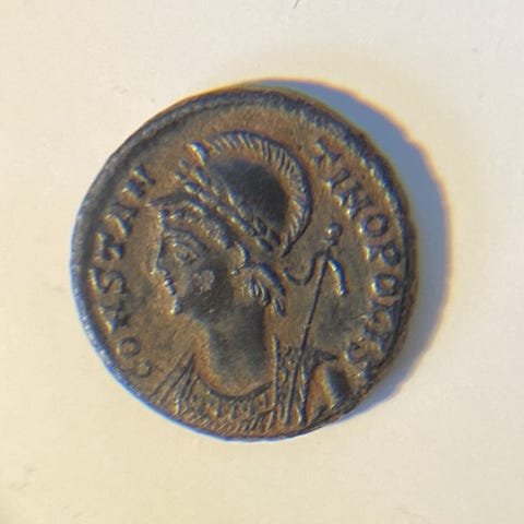 Romersk mynt 97, keiser Trajan, årene 98-117 etter Kristus.