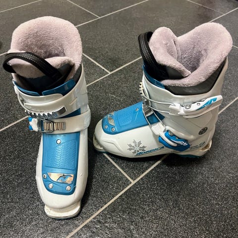 Nordica Fire Arrow Team 3 alpinstøvler i hvit og blå farge. Modellen har tre justerbare spenner i metall og kraftig yttersåle. Slalomstøvlene er egnet til alpint bruk og gir god støtte rundt ankel og legg.