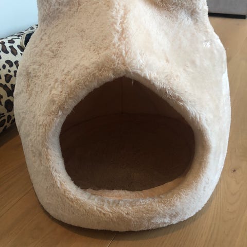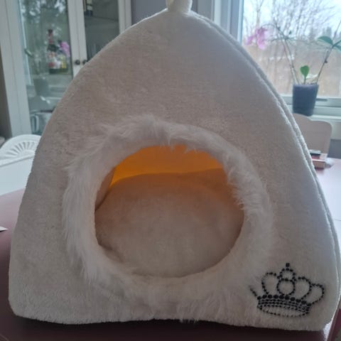Kjøpt på Musti. https://www.musti.no/basic-beehive-katt-cave-beige