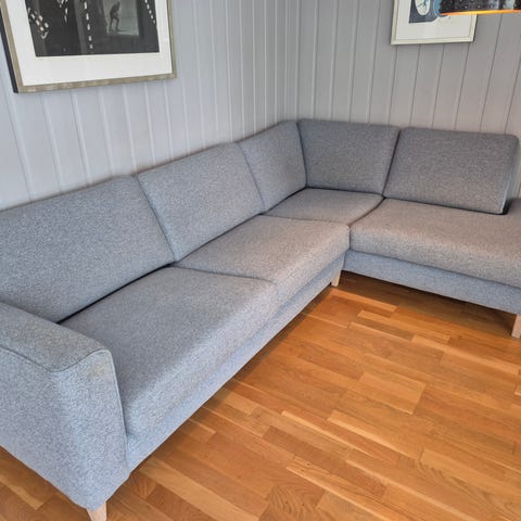 Sofaen er god å sitte i, og er brukt på loftstue.
