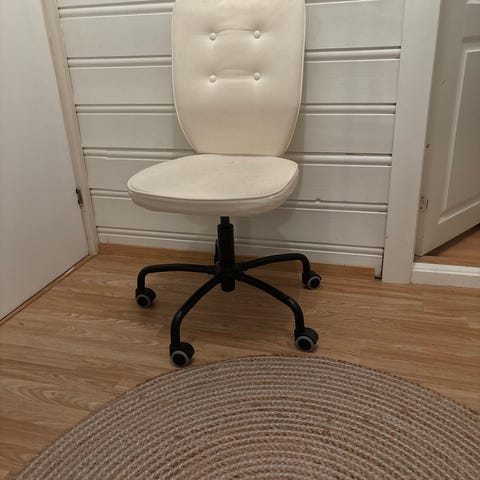 Godt brukt kontorstol, ingen spesielle anmerkninger, litt falmet i fargen noen steder og litt nupper.mye bruk igjen.