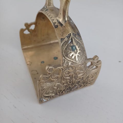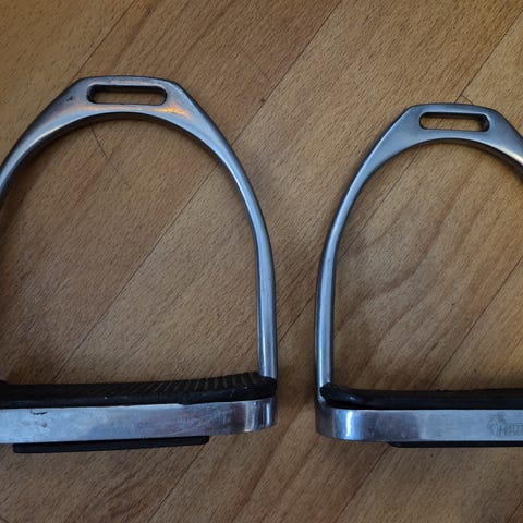 Ca 13 cm bredde. En del bruksmerker, men kan brukes i mange år til. Hvite gummibelegg som lett kan skiftes til sorte om man vil.