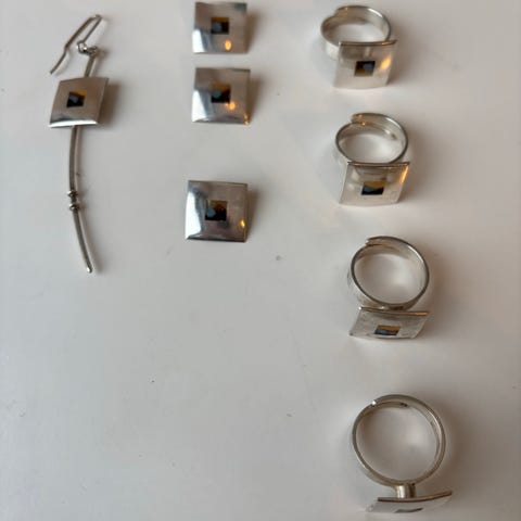 Noen smykker fra Tinn-Per selges samlet eller hver for seg. Priser på bildene.