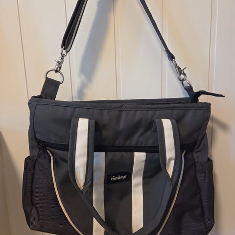 Emmaljunga stelleveske i svart farge. Vesken har bærehåndtak og avtakbar skulderrem for fleksibel bruk. Hovedrommet lukkes med glidelås og innvendig er det flere lommer for organisering av bleier, flasker og annet babyutstyr. Egner seg til bruk på trilleturer og som tilbehør til barnevogn.