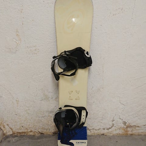 Warp Joker snowboard med bindinger av høy kvalitet. 98cm langt passer fra 3-4år. Bindingene er gode og enkle å bruke. Det er gått et skall av lakken på tuppen av brettet, som vist på bildene. Kun kosmetisk.
