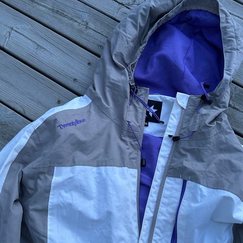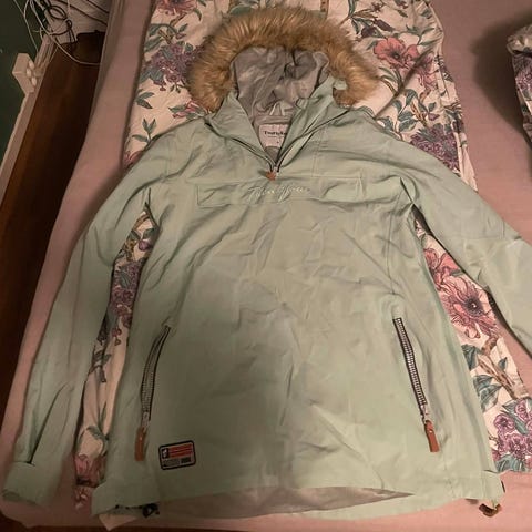 Twentyfour ytterjakke for dame i størrelse M. Jakken er laget i polyester og har hovedfarge i rosa med kontrastfelt og mønstret parti øverst. Den har fast hette med snorstramming, glidelås i front og flere glidelåslommer, blant annet brystlomme. Ermene har mørke forsterkningsfelt. Egner seg som allsidig ytterjakke til hverdags og turbruk.Jeg vel si at jakken ermer korallfarget/ fersken enn rosa. Lite brukt. Nydelig jakke. Jeg sender mot porto,