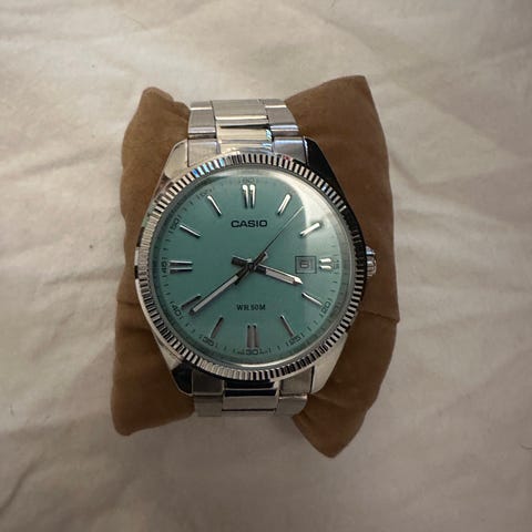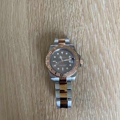 Klokken fungerer bra. Noen bruksmerker og riper på glasset etter normal bruk.