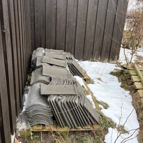 Teglstein gis bort. Må mot demonteres fra pipe. Har ca. til pipe på 2m høyde.