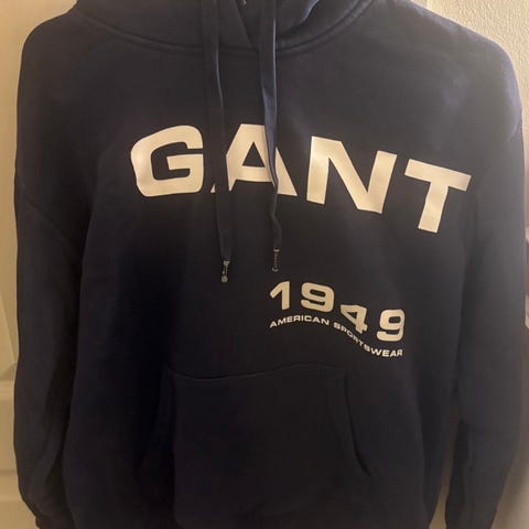 Gant hettegenser for dame i størrelse S. Genseren er grå og laget i bomull. Modellen har hette med snøring og ribbekanter ved ermer og nederkant. På brystet er det brodert Gant-logo med skjoldmotiv. Passer til hverdagsbruk og fritid.