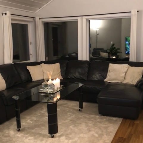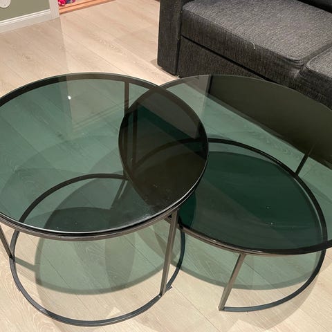 Vi selger vår pent brukte sofagruppe inklusiv glassbord, puff og teppe. Møblene er i sort skinn, ble kjøpt på Bohus for ca 10 år siden og er i veldig god stand.
