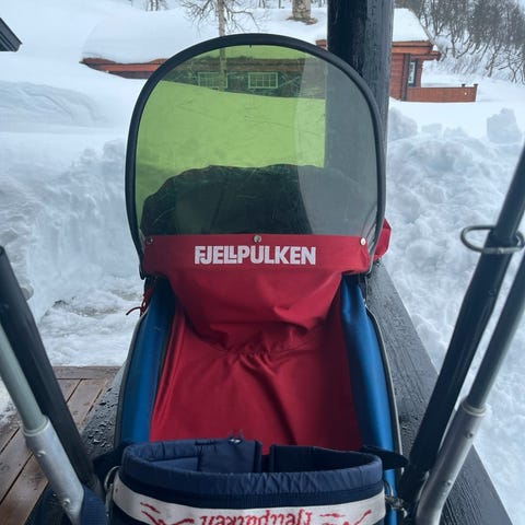 Fjellpulken barnepulk til leie. Følger med vindskjerm, drag og sele.