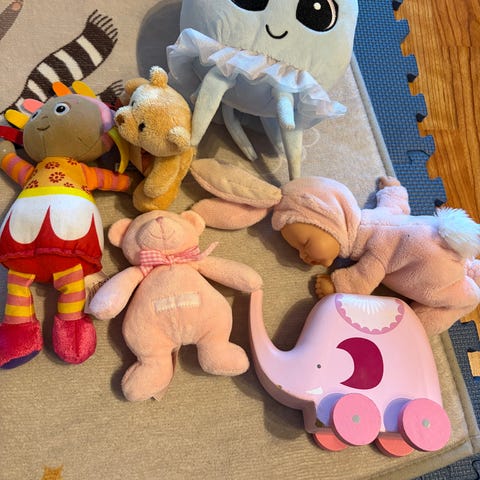 Squishmallows kosedyr i rosa farge. Myk og rund figur med horn og broderte detaljer i ansiktet. Egnet som kosedyr eller pyntepute på barnerom.