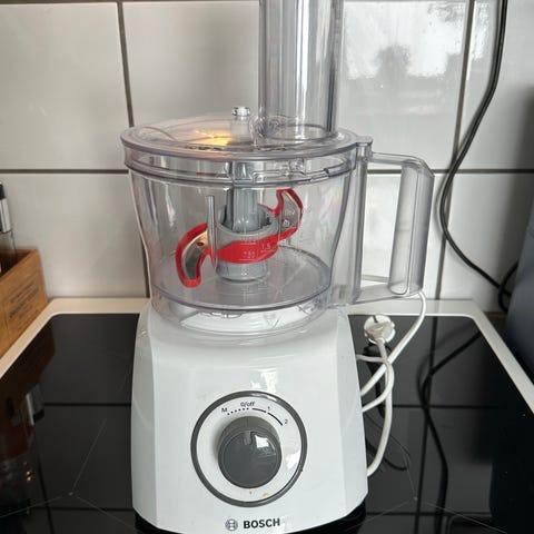 Bosch kjøkkenmaskin med blender, mange tilbehør i en skuff under maskinen!