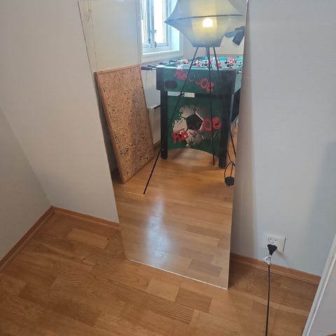 Speilet er 100 cm høyt og 40 cm bredt.