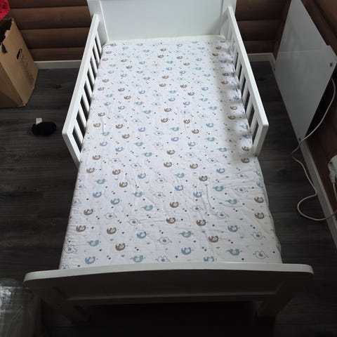 Madrass og sengetøy følger med i prisen