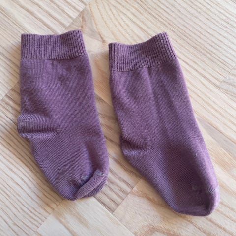 🌸 Tynne, formstrikkete ullsokker til baby fra Nøstebarn i 100 % økologisk, ubehandlet merinoull. Myke og gode.