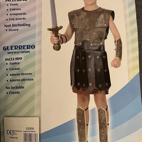 Mener å huske at det er str 122/128 og det kan passe mtp alderen på barna her i huset.