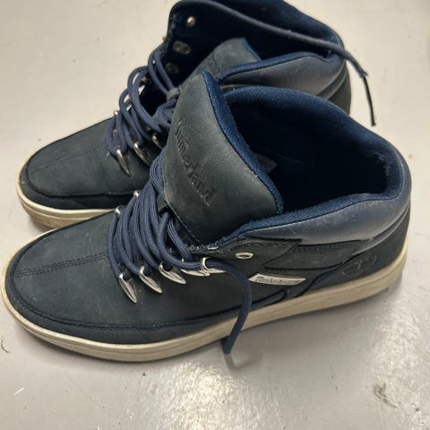 Timberland tursko for herre i størrelse 41,5- 42. Skoene er svarte med kontrastfargede lisser og tydelig Timberland-logo på siden og pløsen. Overdelen er laget i ekte skinn kombinert med syntetiske materialer, med syntetisk fôr og yttersåle. Modellen har polstret ankelparti for økt komfort og snøring foran for justerbar passform. Egnet som fritids- og tursko i variert terreng. Nesten ikke brukt.