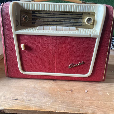 Kurér bærbar rørradio i blå og krem farge. Radioen har bærehåndtak på toppen og frontpanel med skala for flere bølgebånd, betjeningsknapper og to dreieknapper for innstilling. Kabinettet er trukket i blått materiale med ventilasjonsåpninger på baksiden. Innvendig er det rørbasert elektronikk og innebygd høyttaler. Egner seg som samlerobjekt eller dekorativt vintageapparat. Det anbefales at kjøper selv kontrollerer teknisk tilstand og funksjon.