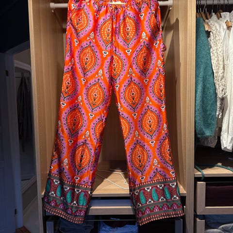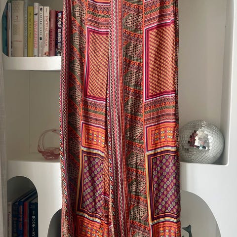 Hippiebukser med ordentlig sleng, se ut som skjørt, passer best en høy M/L.
