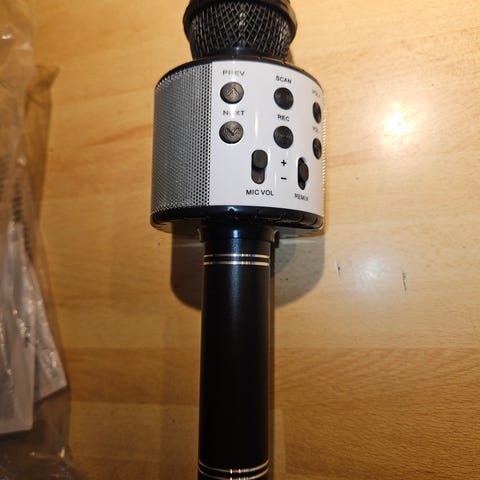 Mikrofon til barn på stativ med av og på knapp.