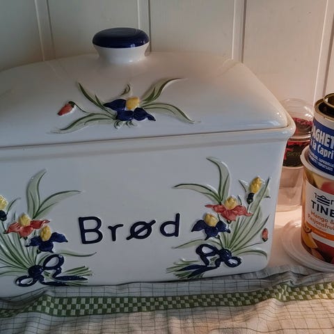 Har denne pene porselens brødboksen jeg selger.