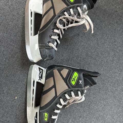 3 par barne skøyter for ishockey. Skøytene har justerbar plast- og tekstilkonstruksjon med spenner og reimer for å gi god passform til barn. Passer til bruk på isbane og til lek og trening på is for barn. Flere par skøyter vises på bildene, med lignende justerbar konstruksjon og polstret innersko for økt komfort ved bruk på is.